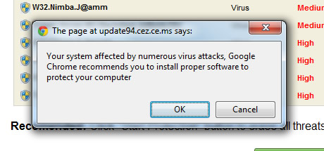 There’s Google Chrome Fake AV building strength on the web. I found it through a simple image search. By clicking the preview of the image, the website loaded in the background, as expected, but immediately navigated elsewhere and presented me with a warning dialogue.